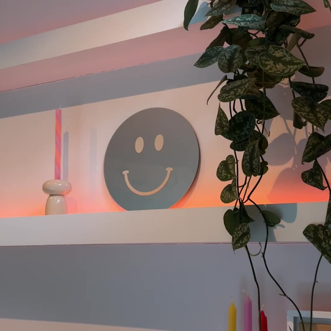 Stel je voor: die saaie muur of dat lege plankje krijgt een upgrade met deze stralende schoonheid. De grote beige smiley springt eruit, speels en levendig. Of het nu de kinderkamer is die een dosis charme nodig heeft, of je eigen knusse plekje dat schreeuwt om een beetje fun – deze spiegel is het antwoord.